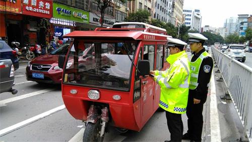 二是加大整治力度,消除安全隐患。积极组织警力分别在辖区重点区域、重点路段、重点时段,集中警力,进行三轮车查处整治工作,重点以三轮车不按规定通行、乱停乱放、违规载物、违法载人、非法改装、非法加装动力装置等违法行为,针对个别存在侥幸心理,经说服教育后,仍不整改的,一律进行暂扣,形成严管重罚的高压态势。同时坚持早晚高峰期间,紧抓三轮车查扣力度,严格做到逢车必查、逢违必纠,减少事故发生。