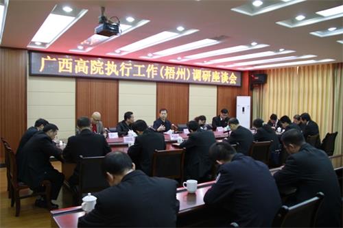 3月4日,自治区高院党组成员、副院长林玉棠到岑溪法院调研执行工作,并召开梧州市两级法院执行局长座谈会,听取工作汇报,共同研究解决当前执行工作存在的困难和问题。