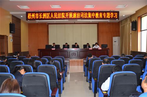3月8日,长洲法院召开全院干警大会,开展廉洁司法集中教育专题学习,以促使法院干警增强廉政自律意识,不断改进纪律作风,坚守廉政司法底线,增强拒腐防变能力。