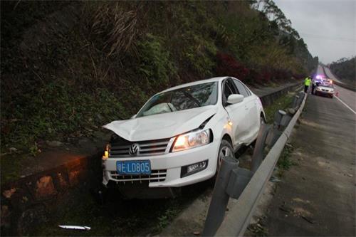 据司机介绍,他们从广东赶着回老家,由于赶时间,连续驾驶了5个多小时,看到天色渐暗,为了尽快赶在天黑前回到家,于是顶着疲劳,并加快了车速,当行驶到事发路段 时,由于太累了,眯了一下眼,车辆失去控制,加上车速过快,操作不当,撞破了防护栏,冲到了排水渠里面,所幸的是人员没有大碍。