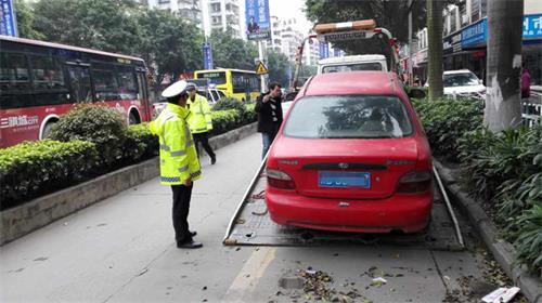为有效缓解“停车难”与“行车难”问题,3月15日,长洲交警大队组织警力深入城区各主干道路,对长期占用公共停车位且无人认领的“僵尸车”进行了集中整治清理,切实规范城区道路停车秩序。