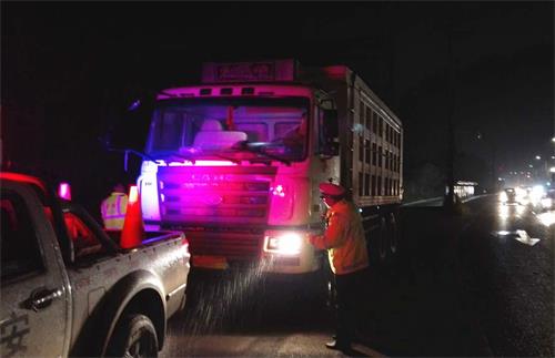 为进一步加大对货运车辆夜间违法行为的整治力度,全力预防和减少夜间道路交通事故的发生,龙圩交警大队针对辖区货运车辆超限超载、闯禁区等影响道路交通安全的突出问题,于2016年3月16日晚开展了夜查夜检工作,为辖区营造了良好的道路交通环境。