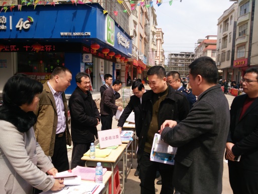 2016年3月14日,县委政法委、县综治办组织政法各单位和主要综治成员等20多个单位120多人组成送法下乡工作队到石桥镇集中开展 “弘扬法治精神,维护公共安全”为主题的送法下乡宣传活动。