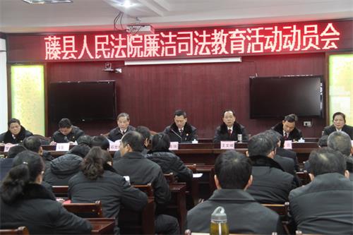 会上,石院长还对藤县法院开展以“七个一”为主要内容的廉洁司法活动进行部署,具体内容为:一是开展学习《中国共产党廉洁自律准则》、《中国共产党纪律处分条例》的专题学习;二是开展廉洁司法制度条规定的学习;三是院领导上廉洁教育党课;四是开展观看电教片或到廉政基地参观等形式的警示教育;五是开展警示教育;六是开展法院警示教育案例选编学习活动;七是举办《中国共产党廉洁自律准则》、《中国共产党纪律处分条例》为内容的知识竞赛活动。