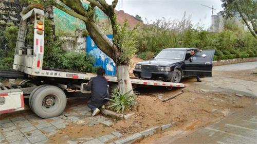 经过民警十多分钟的等待和寻找,始终没有找到车主。为了尽快恢复施工工地正门交通秩序,民警当机立断对小汽车采取拖移措施。