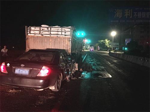 2016年4月7日凌晨2时30分左右,龙圩交警大队接到报警称:在龙圩区城东五路帝龙酒店红绿灯路口发生一起一辆小型轿车追尾碰撞一辆大货车的交通事故。接报后大队事故中队的值班民警马上出警处置。