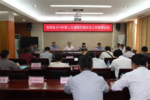4月5日下午,苍梧县人民政府在县政府会议室召开了2016年第二次道路交通安全工作联席会议。副县长、公安局长周小松,县公安局党委副书记、政委杨创新,县公安局党委委员、交警大队大队长、县道路交通安全工作联席办公室主任莫观生以及县联席会议成员单位和各镇政府、交警大队民警、客运企业法人代表等40多人参加了会议。会议由县府办党组成员、法制办主任李召生主持。