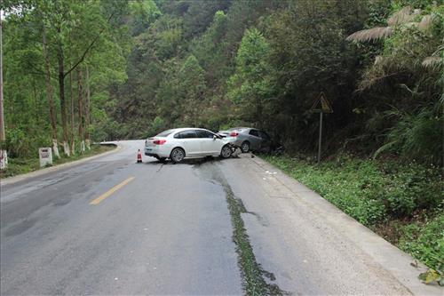 2016年4月2日12时许,在国道207线南水公路广西岑溪路段发生了一起两辆小型轿车相碰撞的交通事故,两车车头严重变形损坏,幸运的是一个好习惯救了两车人的命。