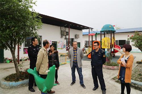 宣传民警与幼儿园负责人交谈