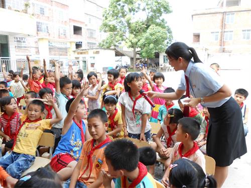 看到少年们有所触动,谭巧华问他们说:“我们的家乡美丽吗?”“美丽!”少年们异口同声答道。“你们知道再过几天的9月3日是什么日子吗?”好几位少年喊着回答“抗战胜利70周年纪念日。”“是的,我们的先烈用热血和生命保家卫国,换来我们今天的和平生活,我们该怎样回报家乡呢?”台下少年沉思一会,小徐站起来,闪着坚毅的眼神说“家乡如此美丽,我要积极改造,多学本领,日后建设家乡。”