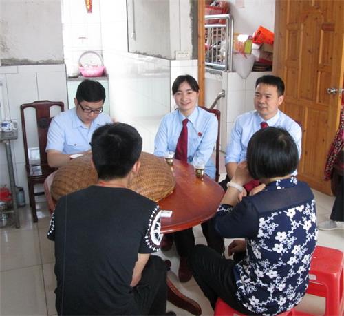 4月12日上午,藤县法院少年审判庭法官江春建等五人来到藤县大冲肚(地名),对因犯盗窃罪正在缓刑考验期内的未成年人邓某某进行回访帮教。