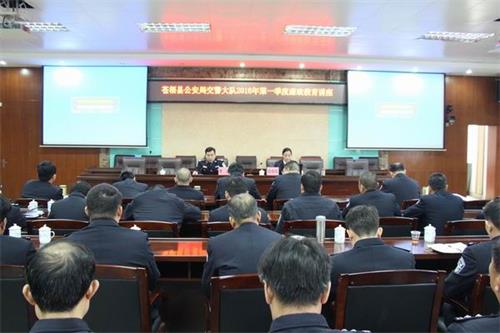 为了加强队伍建设,整顿队伍纪律,提高民警的廉洁自律意识,进一步加强队伍的廉政建设,1月25日下午,苍梧大队举办了2016年第一季度廉政教育讲座,特地邀请了苍梧县检察院职务犯罪预防局叶长清副局长主讲了题为“慎权慎欲,书写清白人生”这堂精彩的廉政教育讲座。讲座由交警大队教导员黎露主持。县公安局党委副书记、政委杨创新参加了讲座。