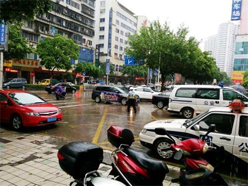 二、加强交通指挥疏导工作。为了保障辖区群众降雨天气下交通安全,长洲交警大队加强了道路交通疏导工作。在市交通局门口位置,执勤民警和协警冒雨指挥车辆减速慢行,有序通过。由于该段道路并没有设置红绿灯,执勤民警和协警只能通过手势和哨声引导驾驶员,保障道路安全、通畅。为了提醒驾驶员合理选择雨天出行时间、路线,长洲交警通过大队官方微博、微信等渠道及时向驾驶员通报道路通行情况和交通管制措施,向过往车辆驾驶人进行交通安全提示,发布路况信息,疏导分流车辆,使驾驶员能了解道路出行情况,合理安排出行路线,防止车辆盲目通行造成交通拥堵情况。