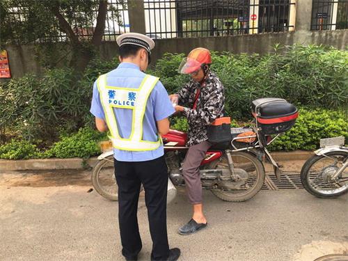 三、广泛宣传教育,营造良好氛围。针对乡镇地区“赶集”天人流集中这一特点,通过发宣传资料等方式,向群众讲解摩托车超速、无证驾驶、酒后驾驶、违法规定载人、不戴安全头盔等严重交通违法行为的危害和严重后果,警示教育群众提高安全意识,确保人民群众出行安全。同时,组织民警到周边学校开展安全知识宣传活动,讲解交通安全常识,要求学生们树立遵守法规的责任意识和文明礼让的交通意识,提醒学校、家长加强对学生的交通安全教育,做好孩子成长路上的“引路人”,自觉遵守交通法律法规。