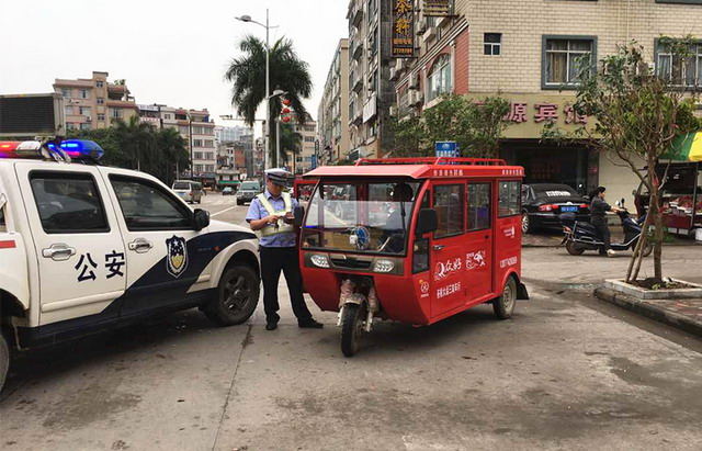 为加强辖区交通秩序管理和净化道路交通环境,切实保护人民群众生命和财产安全。龙圩交警大队整合警力,立足辖区实际,针对近期三轮车违法载客、乱停乱放、遮挡号牌等违法现象突出,危险性大的特点,2016年4月22日在辖区持续开展三轮车违法行为整治行动。