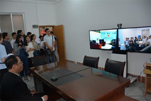 随后,在讲解员的带领下,大家来到位于审判大楼二楼已投入使用的科技法庭,亲自感受一番法庭的庄严。从审判台到原被告席,从先进的速录设备到现代化的录像录音系统,讲解员对科技法庭的设施及功能一一作了详细介绍。