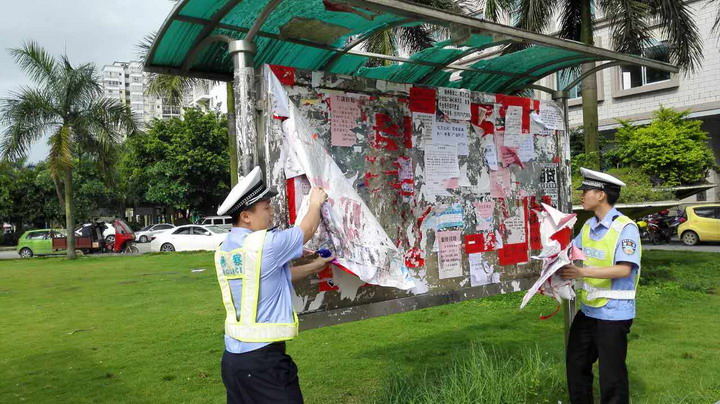 清理站牌上的广告