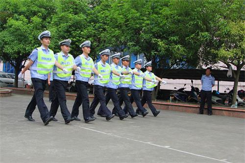 协警常常需要在吵杂的环境与恶劣的天气中开展交通疏导、事故处理工作,坚韧的意志与良好的心态十分重要。随着训练教官的一声声口令,参训协警们规范执行一个个整齐划一的动作,令行禁止,纪律严明。到了4月26日下午,阳光炽烈,一道道笔挺身影矗立,汗水早已浸湿了后背,通过近两天的队列(军姿、停止间转法、敬礼、三大步伐)练习和擒拿术的磨练与配合,以及八大交通指挥手势的强化练习,协警们的精神面貌焕然一新,团队的协作力愈发凝聚。