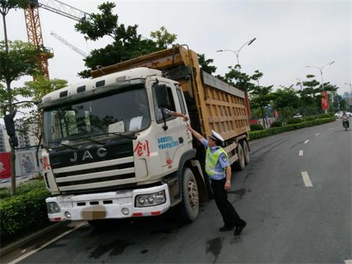 二、严格源头管控。为了做好泥头车交通管理工作,在本次集中整治行动前,大队利用日常巡查和天网监控确定辖区泥头车通行路段、时间,有的放矢,强化路面管理。重点加强三龙大道、西堤三路、两广惠民小区周边工地的监管力度,及时查纠泥头车超限超限、闯禁区等交通违法行为,努力把泥头车交通违法消除在上路前。