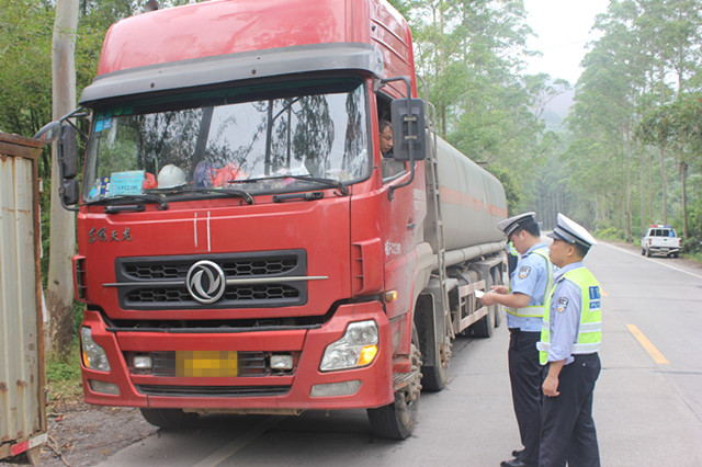行动中执勤民警着重对运输危险品企业的行驶路线、时间、动态监控系统值守,车辆检验、驾驶人、押运员从业资质及车辆紧急切断装置等安全设施配备使用情况进行全面检查、登记造册。通过查看企业运输车辆检测台账、现场车辆安全检测等方式,对运输车辆危险警示标志、安全防护措施等工作进行大规模全面检查,对运输车辆存在安全隐患的企业及时下达整改通知书,责令其整改,从源头上消除各种安全隐患,确保“五一”期间道路交通安全。