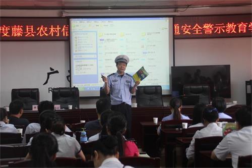 5月7日上午,藤县公安局应邀派出民警到藤县农信系统开展2016年藤县农村信用交通安全警示教育学习。交管大队李伟明教导员就交通安全方面进行主讲,并发放相关宣传资料。