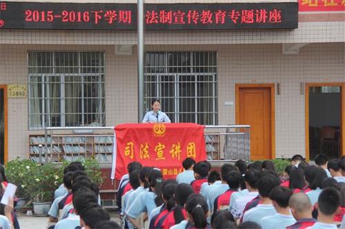 为保护未成年人的合法权益,呵护未成年人健康成长,5月10日,蒙山县人民法院组成司法宣讲团前往蒙山县第二中学开展司法宣讲活动,通过法制专题讲座形式为1000多名师生送上丰富的“法律营养大餐”。