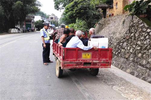为维护“双报到”活动期间辖区的道路交通环境,从严整治三轮车人货混装、违法载人等严重交通违法行为。2016年5月12日,龙圩交警大队新地中队执勤民警查获一起正三轮载货摩托车违法载人的交通违法行为,及时消除了一起交通安全隐患。
