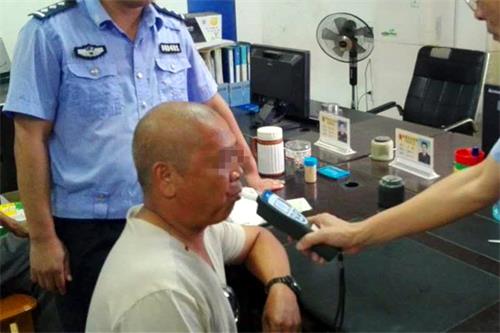 民警检测驾驶员酒精含量