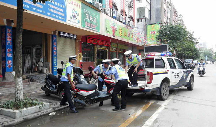2016年5月30日,大队组织警力在辖区校园路、广信路、凤岭街等校园周边路段进行拉网式排查。一是采取“定点检查、巡控巡查、合围拦截”等方法对摩托车、燃油助力车飙车行为实施打击。执勤民警以广信路为中心,覆盖周边道路各网吧、奶茶店及摩托车维修点等,力争最大范围、最大限度打击摩托车、燃油助力车飙车、无证驾驶、遮挡号牌、非法拼装、改装机动车、未按时购买第三者责任保险等交通违法行为;二是以上午10点至12点、下午15点至17点等重点时段为整治重点,有力打击部份驾驶人凭借晓幸心理违法行驶。对凡有非法加装喇叭及非法改装的,一律依法从严处罚,并当场予以拆除,同时,对当事人作出批评教育。