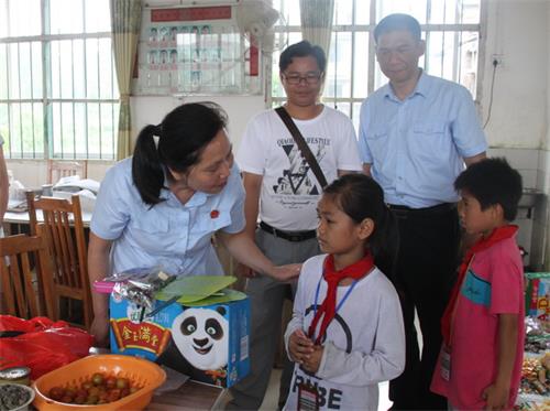 5月31日上午,何玲等人来到东荣镇华安小学,为留守儿童罗婷婷、罗静婷、何小满送上节日的祝福。
