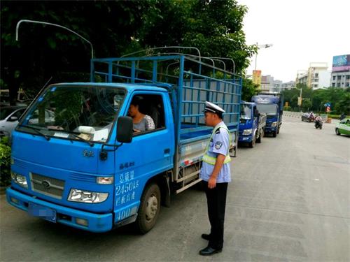 三、严把“监督管理”关,加强对货车行驶时间、路线的审批力度。为了规范辖区各主干道路内货运交通秩序,长洲交警加大对货车行驶时间、路线的监督管理力度,执勤民警主动走进货运、物流企业提醒企业管理人员要按时到长洲交警大队办理货运车辆临时通行证,按规定时间、路线行驶,在高峰期内不能进入市区道路。对被查处的闯禁区货车驾驶员,执勤民警在依法进行处罚的同时加大教育力度,责令驾驶员要按相关法律法规行驶。