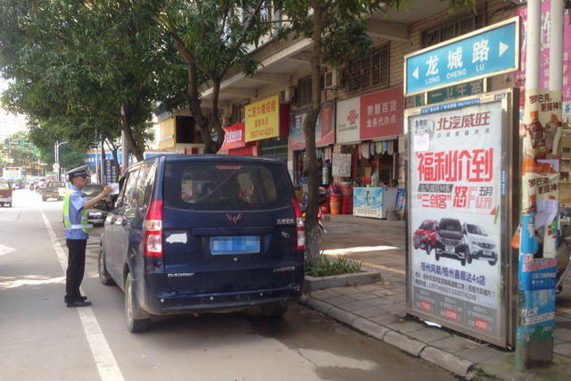 龙圩交警整治车辆违停行为