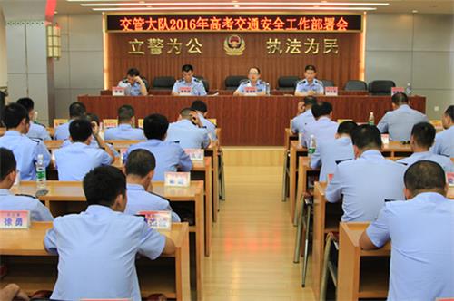 会上,盘涌辉首先为交管大队全体民警和协警做了思想动员的工作,盘涌辉指出:高考是全社会都关注的大事,各民警和协警思想上一定要高度重视,层层落实责任,确保高考期间各考点周边道路的管控工作落实到位,确保将考卷和考生顺利护送至考点,确保高考期间高考交通安全保卫工作万无一失。随后,会议对高考期间交管大队的交通安全管理工作做了具体的部署工作,落实各中队、各民警的工作职责,对为接送考生车辆、运送考卷车辆的开道工作、考点周边道路交通秩序的维护工作等都详细部署到位。最后,盘涌辉还强调:高考期间在做好维护交通秩序的同时还要准备好快速处置交通事故及各类突发事件的工作,确保快速接处警,加强各类突发事件应急机动警力。交管大队已与辖区出租车公司沟通,出租车公司准备好40辆临时应急出租车,将免费为考生服务,确保考生能够快捷、及时到达考场。