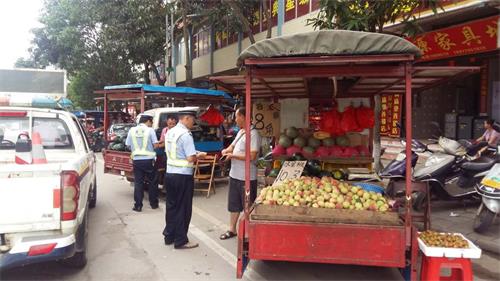 2016年6月14日,龙圩交警大队针对辖区林水市场周边以及苍梧大道重点路段形成一定规模的占道经营“马路市场”进行了专项整治。整治过程中,大队根据辖区实际情况,以“定人定岗”的方式,加强巡逻管理力度,增强管理实效。一是组织民警对龙城路、龙兴路、苍梧大道等路段违法乱停的车主进行教育或劝离;对屡教不改的违停车辆进行处罚或暂扣。二是对占道经营的摊贩进行全面清理,对“马路市场”摊贩采取人性化的管理措施。三是在整治过程中民警文明执法,发现有运载水果的车辆乱停乱放、占道经营等违法行为及时给予纠正,实行“引导与管理、教育与处罚”相结合,采取以正面引导教育为主、以处罚为辅等执法手段。同时,在现场鼓励广大群众积极举报路边违停、占道经营等不良行为,共同抵制各种不文明的现象再次发生。