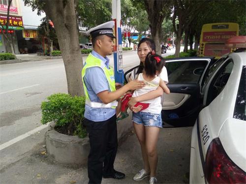 热心交警护送生病孩子去医院