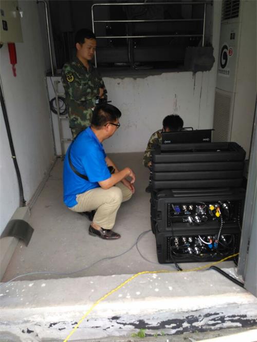 5月27日上午,经梧州市军分区、武警支队配合,我处技术人员前往移动公司10楼楼顶排查干扰。经现场排查,武警支队反恐演练使用了WJYS-1-ZXZK70 A(60A)“武警勇士—Ⅰ型信息化士兵作战系统中心站控制器及服务器”,该基站使用580、320、361MHz三套发射模块,功率较大,采用全向鞭状天线发射。其中,320MHz发射频点严重干扰了周边1公里范围内汽车遥控锁、遥控巻闸门的正常使用,导致汽车遥控锁失灵、遥控巻闸门无法关闭。经武警支队与设备生产厂家沟通,320MHz频点是作为反恐演练图象传输的备用频点,在不出意外的情况下,可以不使用。武警支队关闭备用基站设备后,干扰立即消失。
