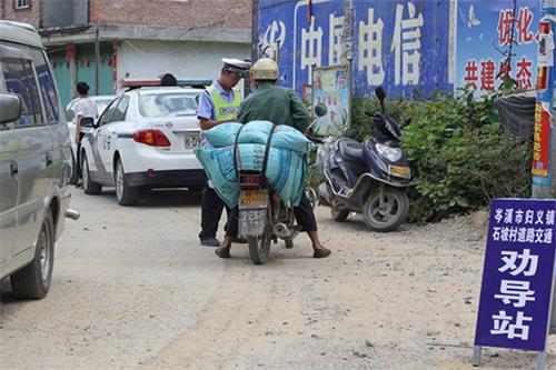 “你这摩托车怎么能绑这么多货物,超载了,在村里的路上开车也一定要戴安全头盔啊”,石坡村的劝导员在对一位开摩托车经过的村民说到,在做好交通劝导工作的同时他也负责配合岑溪大队的民警开展农村交通安全隐患排查、交通秩序检查和整顿并做好各种交通劝导登记和记录等工作。岑溪大队归义中队的高警官说到“农村道路交通劝导站的建立极大的帮助了加强农村交通安全宣传工作,这些劝导员都是本村人,他们平时对村里人进行安全教育和提醒、制止村里人开车超员超速超载等劝导工作时,大伙都比较愿意接受。”农村驾驶人的交通安全意识普遍不高,而村里的道路上三轮车超载、无证无牌驾驶、驾驶摩托车不戴安全头盔等现象又时有发生,如今农村道路交通劝导站的建立有效帮助了岑溪大队加强农村道路交通安全管理工作,将交通安全隐患消除在萌芽阶段。