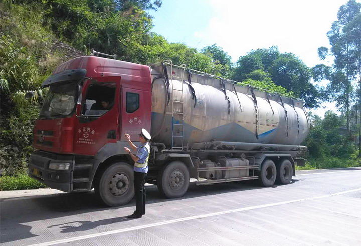 龙圩交警狠抓夏季高温天气条件下危化品运输车辆安全管理工作