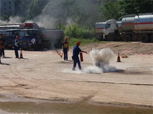 此次演练内容主要是模拟一辆油罐车在南岸公路行驶中因避让一辆货车而发生油罐车向路基侧翻,致使汽油泄漏而采取的应急处置情景。