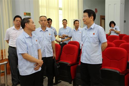 2016年6月22日,阳光明媚,刚上任的梧州市中院党组书记滕志华带领党组副书记、常务副院长黄炳雄、执行局局长颜桂南、办公室主任陈金萍和研究室主任莫志祥到藤县法院检查指导工作。藤县县委政法委书记何勇翔、藤县法院党组书记、院长石忠贵与班子成员一起参加座谈交流。