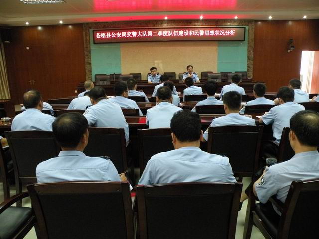 6月23日,苍梧交警大队组织全体民警召开了第二季度队伍建设和民警思想状况分析会议。会议由县公安局党委委员、交警大队大队长莫观生主持,教导员黎露作队伍建设和民警思想状况分析。