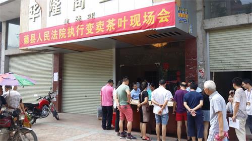 2016年6月28日,藤县法院执行干警在藤州镇藤州大道华隆商厦一楼现场公开变卖十吨茶叶。由于事先通过微信公众号发布变卖茶叶公告,这次变卖吸引了许多群众前来咨询购买。但不少群众感到疑惑,法院干警怎么跑出来卖茶叶了?事情的缘由是这样的: