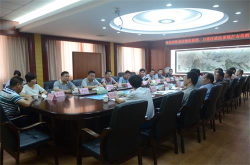 6月28日,钦州市钦北区区委党委、政法委书记姚平带领该区公、检、法三家领导一行13人,到梧州市万秀区交流学习打击传销工作。座谈交流会在万秀区人民法院举行,会议由万秀区政法委书记张国辉主持,万秀区法院党组书记、院长黎家伟、万秀区检察院检察长蓝兴瑞、万秀区公安分局局长姚瑞新以及万秀区公、检、法三家业务部门负责人参加了会议。