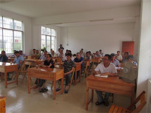 夏垌村各位党员认真听课,并交流学习心得体会