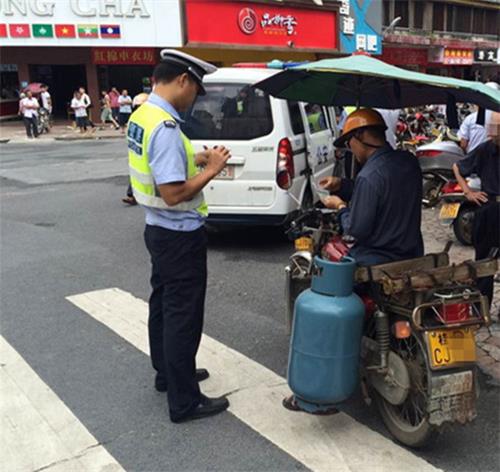 交警严查加装遮阳伞摩托车