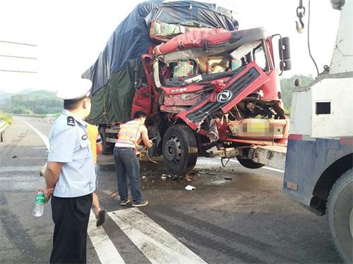 7月6日梧州市公安局交通警察支队高速公路管理一二五合署办公大队在凌晨4时许处理一起两辆重型半挂牵引追尾事故。