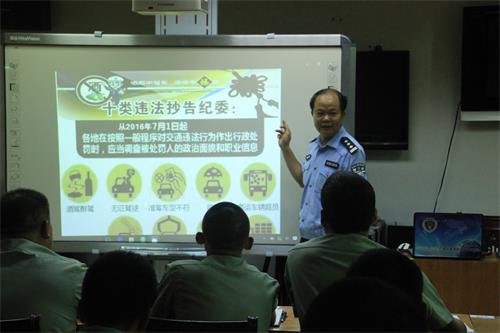 为使消防官兵能直观感受到交通违法行为造成重大伤亡事故的严重后果,从中吸取血的教训,为今后自觉遵守交通法规,安全行车打下良好的基础。宣传民警首先播放了重特大交通事故影像视频资料,并对事故视频资料进行适当的点评,提醒驾车时要敬畏法律、文明礼让,自觉摒弃妨碍安全驾驶的交通陋习。接着,宣传民警在授课期间重点分析了醉酒驾驶、超速超载、闯红灯等常见违法行为存在的安全隐患,分析交通违法行为的危害性和严重后果。并针对消防官兵的职业特点,提醒消防官兵在出车处警时,-定要检查车辆是否配齐安全装备,是否系好安全带,严禁超速行驶,拒绝疲劳驾驶,杜绝酒后驾驶。同时,提醒官兵们驾驶时不要打手持电话,正确使用远光灯,注意驾车视觉盲区,转弯时注意内轮差等安全行车注意事项,并提醒消防官兵要自觉遵守道路交通法律法规,进一步加强安全意识和法律意识,自觉维护军人形象,为共创和谐的道路交通环境起到模范带头作用。