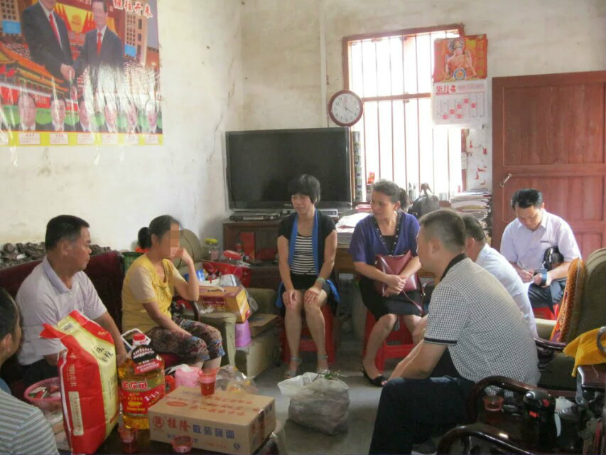 图为慰问组到苍梧县石桥镇冼某某家中进行慰问