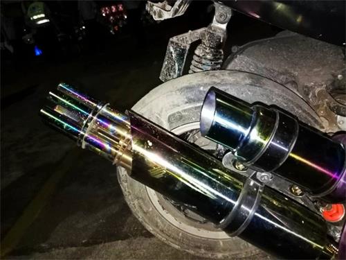 本次行动,执勤民警采取分段查检、定点整治的方式对在机动车非法改装、超限超员、竞速追逐、飙车等危险交通违法行为进行查处、打击。同时主动深入周边道路,对停放在道路边的改装摩托车、燃油助力车进行认真的查纠、整治,对改装车辆的车主和驾驶员进行交通安全宣传教育,多管齐下有效打击摩托车、燃油助力车危险驾驶行为。在当晚的行动中,执勤民警查处了一辆私自改装排气管的燃油助力车。该车的驾驶员为了让车辆更酷炫、更吸引他人眼球而将车辆原有排气管拆卸改装,换成七彩多小孔的违规排气管,在行驶途中,经过改装的排气管发出的巨大的轰鸣声,不仅影响周边居民环境,更对车辆自身的的交通安全造成影响。为了保障车辆驾驶员与行人的交通,净化辖区交通出行环境,执勤民警依法将这辆非法改装车辆进行查处,并对车辆驾驶员进行批评教育。