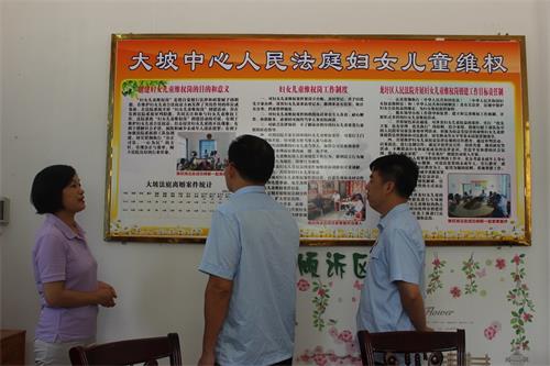 2016年7月20日,自治区妇联副主席伍艳娟,在梧州市妇联主席陈励、龙圩区妇联主席聂丽清等领导的陪同下,深入龙圩区法院大坡法庭调研指导“妇女儿童维权岗”创建工作,对大坡法庭自治区级“妇女儿童维权岗”的创建工作给予了高度肯定,并对今后工作提出了相关意见和建议。